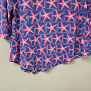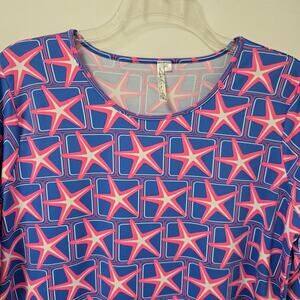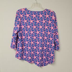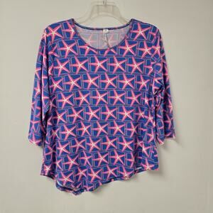 Lulu B Blouse Top XL Star Print Stretch Asymmetrical Hem 3/4 Slv Purple Resort