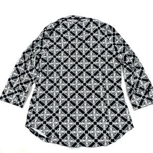 Lulu B Button Front Shirt Nylon Size Medium Black White Print UPF