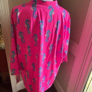 Brand new Lulu B Seahorse Tunic. Bright pink with blue seashorses. Still has tags. Size L