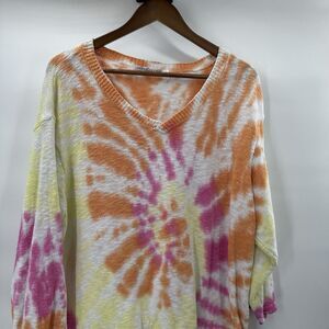 Lulu B Sweater Womens 1X Pink Orange Tie Dye Boxy Knit Beachy Resort Coastal