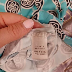 Lulu B Teal Blue Geometric V-Neck Long Sleeve Button Front Top Large Colorful