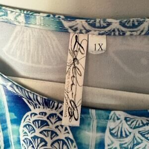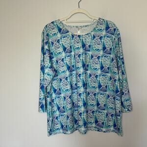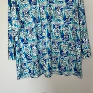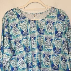 Lulu B Top 1X Blue Fish UPF 50+ Sun Protection Beach Crew Neck 3/4 Sleeve
