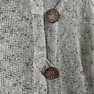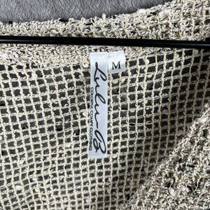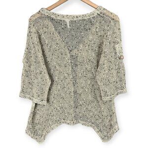 Lulu B V-Neck Open Knit Cardigan Women’s M Beige Sheer Big Button Boho Beach
