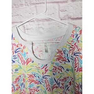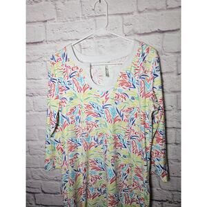 Lulu B Women's Sketched Palms Shift Dress Short Sleeve Bright Colors Large