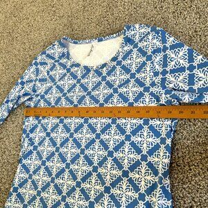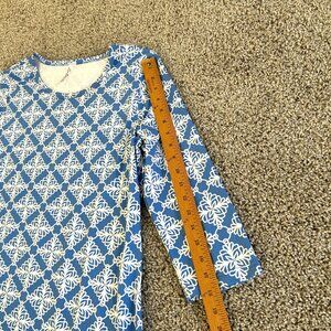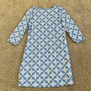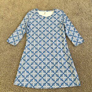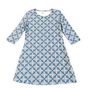 Lulu B Womens Sz S Blue & White Geo Print 3/4 Sleeve A-Line Casual Dress