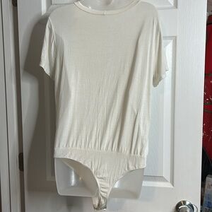 Lulu Basics Off White Body Suit M Short Sleeve Snaps