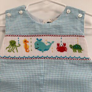 Lulu Bebe Cotton Smocked Pete Shortall Sea Animals sz 3 Months Baby Boy Jon Jon
