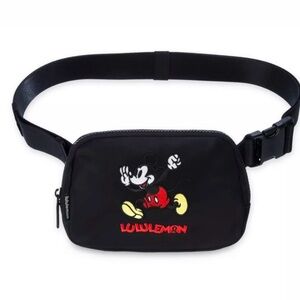 New practical belt bag by lululemon. Features a black color with a fun cartoon design. Ideal for carrying essentials . Perfect for Disney trips!!