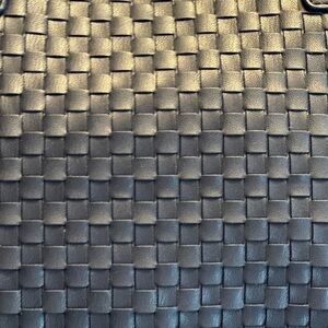 Stunning Lulu Dharma large tote bag. Crafted from high-quality faux leather, this blue tote features a woven pattern and a snap closure. The spacious interior is lined with polyester and features a black lining color, providing ample space for all your essentials. The shoulder strap handle style is comfortable and stylish, making it perfect for travel, weddings, parties, cocktail events, casual outings, workwear, or business occasions.