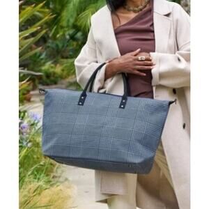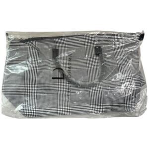 Lulu Dharma Canvas Frasier Black White Plaid Houndstooth Weekender Bag NWT