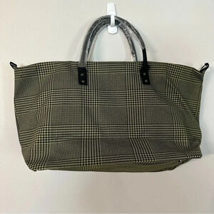 Lulu Dharma Green & Black Houndstooth Frasier Weekender Zip-Up Bag NWT