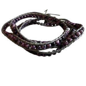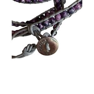 Lulu Dharma Purple Beaded Leather Wrap Bracelet. Good preowned condition, features Lapis Lazuli beads and a leather cord.