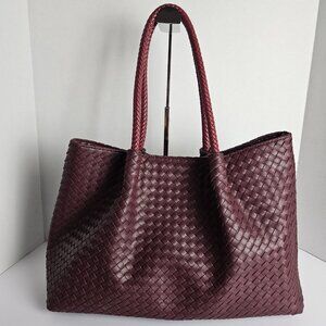 Lulu Dharma Tote Vegan Leather Large Bag Deep Burgundy Wine Woven Bag