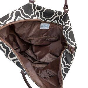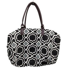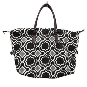 Lulu Dharma Weekender Tote Black Grey White Tile Print Collapsible Travel Bag