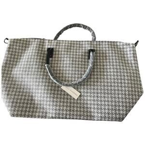 Lulu Dharma white gray houndstooth weekender travel duffel bag w/ strap NWT