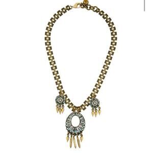 Lulu Frost Designer Signed Blue Crystal Chunky Statement Gold Tone Necklace