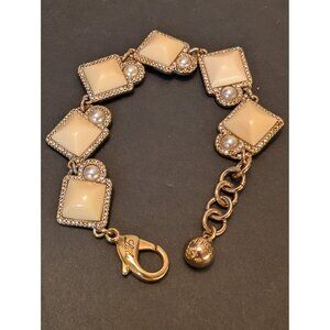 Lulu Frost Necklace & Bracelet W/ Cream Enamel Faux Pearl Accents & Rhinestones