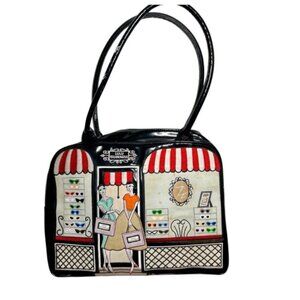 Lulu Guinness Collectable Vintage Purse Paris Cafe Scene Black Medium Retro