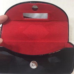 Lulu Guinness Designer 👓Eyeglasses👓 Hard Shell Case w/Mirror Black Shiny