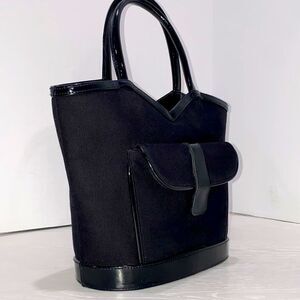 Lulu Guinness London Black Cotton With Faux Patent Leather Trim Purse Satchel