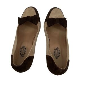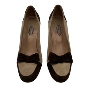 Lulu Guinness London Two Tone Beige Brown Suede Bow Vamp Heels Size 39 Women's