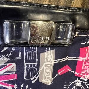 Fun British themed print shoulder bag by Lulu Guinness. In good used condition. Some signed of wear on strap and could be cleaned up new.