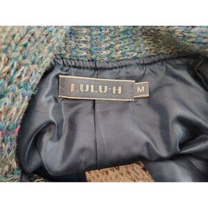 Lulu H Medium Wool Blend Blazer Jacket Teal Blue Patchwork Boho Lagenlook Ruched
