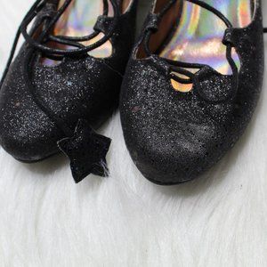 Lulu Hun Black Lace Up Sparkle Iridescent Star Block Heel Size 5