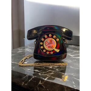 Lulu Hun Telephone Phone Black Women's Purse Patent leather Flourescent Handbag