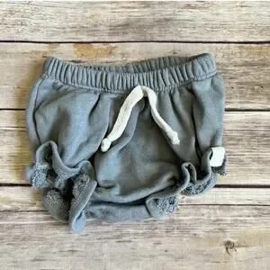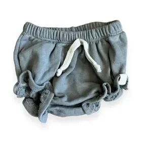 Size 18-24 months, Lulu + Roo, blue ruffle shorties. Medium weight French terry fabric. Elastic waistband with tie. Super soft, perfect for Summer! No stains or flaws. Very good used condition.