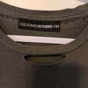 Lulu Simon Studio's Grey Distressed Leopard Lip Tee