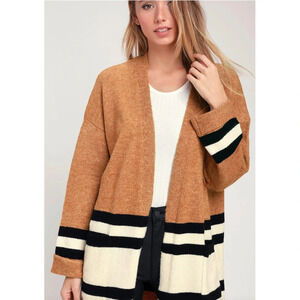 Lulu Size Large Savannah Light Brown Striped Cardigan Sweater