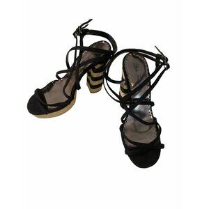 Lulu Townsend Women's Black Strappy Espadrille Platform Sandals Size 8.5