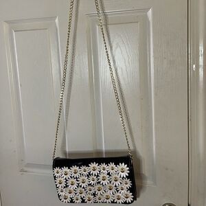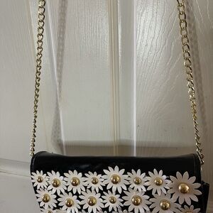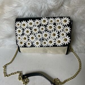 Lulu by Lulu Guinness 3D white flowers black & off white polypropylene weave crossbody bag with snap closure black and white polka dots lining side zipper 2 sides pockets. Gently used no tear clean normal wear.