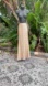 Beautiful, soft baby pink and crusted with sequins. There is a zipper at that waste. The rest of the skirt has a little stretch to it, but not the waist. Fairly fitted to the knee and a trumpets out to a maxi lined in excellent condition.