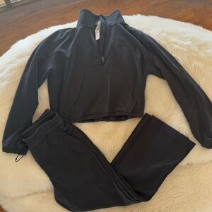 Lululemon gray soft stream sweatpants and cropped sweatshirt set