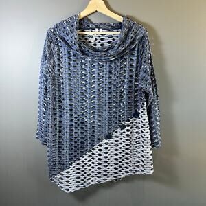 Lulu-B Blue Mesh Asymmetrical Cowl Neck Tunic Top Blouse Size L Nautical