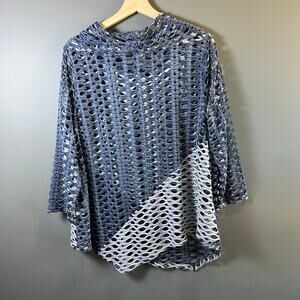 Lulu-B Blue Mesh Tunic Top Size Large Langenlook Artsy Nautical