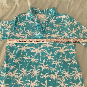 Lulu-B ruffle v-neck 3/4 sleeve top: beautiful turquoise color!