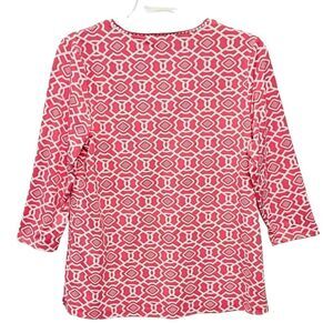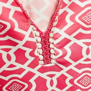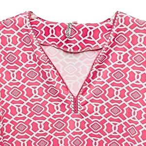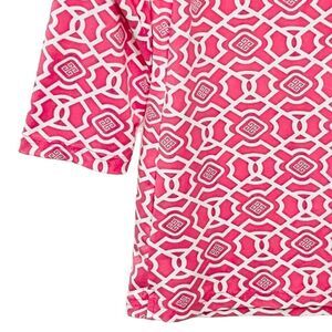 Lulu-B Resort Top UPF 50+ Pink Geo Print Crochet/Detail/Neck 3/4 Sleeves Shirt