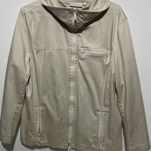 Lulu-B Women's Beige Full Zip Mock Neck Cotton Blend Windbreaker Jacket Large