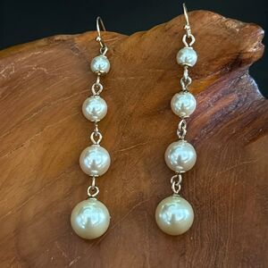 Lulu Frost Pearl Drop Earrings – Graduated Glass Pearls, Gold Tone, 2.75”