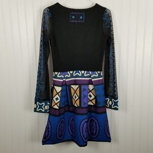 Lulu-H Art To Wear Womens Dress Long Fit N Flare Sheer Sleeve Multi Color Small whimsygoth