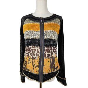Lulu-H Patchwork Knit Cardigan Zip Front Animal Print Sz. Large Mob Wife