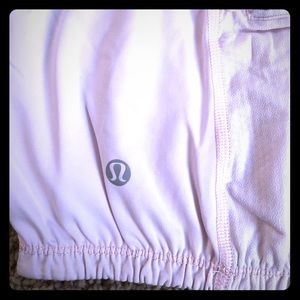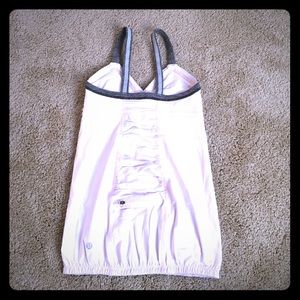 Blush pink with grey reflective straps. Has a slight bubble shape to it, built in bra, and small pocket in the back that fits credit cards, etc. Would be perfect for bar, yoga, and other low impact workouts!