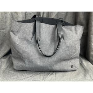 Gently Used in excellent condition - LOOKS NEW! Lululemon tote bag. Gray Exterior with black interior. All Day Tote Bag Approx. 12" Handle Height - Black Approx. 12" High Approx. 20" Long 6" wide measuring bottom Inside Large Zipper pocket Inside Medium Zip Pocket 3 open slots for keys, sunglasses phone.