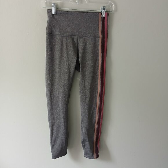 The Lululemon Women's Size 6 Take Hike Leggings in Heathered Gray are a versatile and comfortable activewear option for outdoor activities like hiking. Made from a stretchy blended fabric, these high-waisted leggings feature a skinny leg style with a cropped length for a modern look. The heathered gray color and striped pattern add style while the pull-on closure makes them easy to wear. Whether you're hitting the trails or running errands, these leggings are perfect for a casual yet active lifestyle.