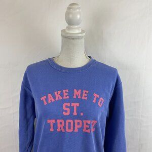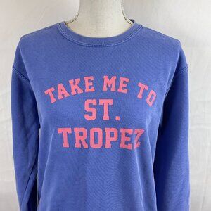 LuluSimon Studio Sweatshirt S Blue Pink Take Me To St. Tropez Long Sleeve