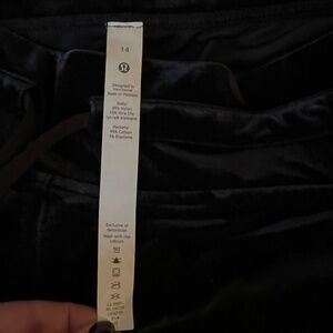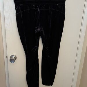 Like new joggers from Lululemon. Made from soft velvet with the insignia on the calf with pockets and drawstring waist. The drawstring ends finished with silver metal to give the pants an elevated touch.