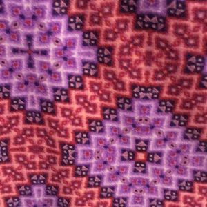 Super cute, fun design; reddish/pink background with purple diamond shapes outlined in black; one size fits most but since a size was required I put medium